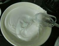 6.白糖分三次加入蛋白中,打发接近硬泡状态