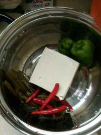 3.酸菜,青红椒,生姜切好