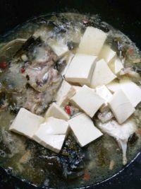 5.加酸菜,朝天椒,加水没过鱼头,撇去浮沫
