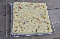 10.把拌好的材料倒入烤盘,用刮刀刮平
