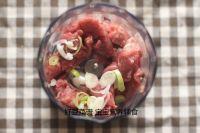 5.5. 先把牛肉和葱花一起用搅拌机搅拌成泥。