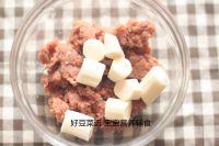 7.7. 再把山药加到牛肉里面一起搅拌。