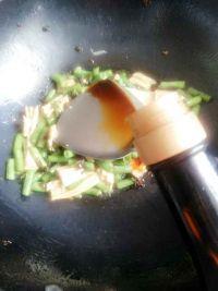 3.热锅倒油,放豆角和梅干菜翻炒片刻