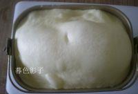 2.面包粉上撒酵母粉、设置面包机揉面程序、