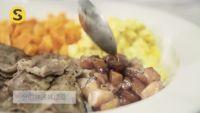 8.准备一碗米饭,分四块区域摆盘。