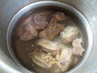 2.将焯好的牛排骨下入高压锅中,加适量的料酒。