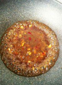 8.倒入调料汁烧煮一小会儿(生抽 蚝油 醋 白糖 淀粉各适量加水调成一碗调料汁)