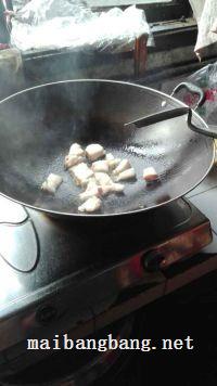 4.放入花椒,豆瓣还有瘦肉一起炒。