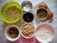 4.筛入面粉,加入自制蜜汁橘皮丁和核桃,拌匀。