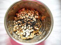 花生微波叮熟去皮;核桃切碎粒;黑芝麻炒熟备用。