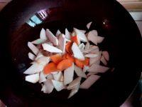 4.放入杏鲍菇和胡萝卜片翻炒几下