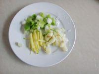 5.炒锅倒油烧热,下葱姜蒜煸炒出香味。