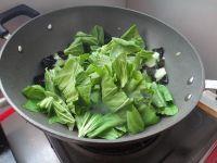 7.叶帮炒熟后,放入叶片翻炒两下。