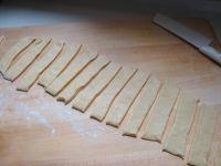 5.然后切成条,两个放在一起,用筷子在中间压一压。