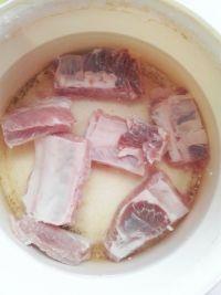 2.排骨放清水里泡30分钟,泡出血水洗净
