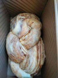 6.把面团和豆沙馅擀成一样长宽的薄片。