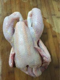1.仔鸡掏掉内脏,去掉鸡屁股,清洗干净后,沥干水分备用!