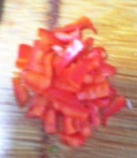 8.把虾倒回锅中,放红椒一起炒匀就可以啦