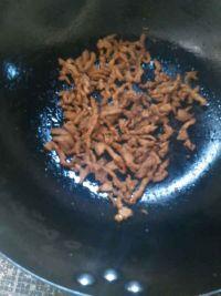 3.猪肉切丝,加料酒豆粉少许生抽调匀待用。