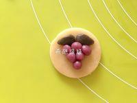 8.在圆形饼皮上把叶子和小圆放置成葡萄串的样子,相互之间稍微放紧凑些,不用刷蛋液之类的