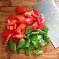 10.加入青红椒翻炒均匀