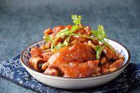 12.当中要注意观察粘底可水烧干,如果时间到后水还太多,可以开锅进行收汁。只要蹄子熟透变软就可以,不要炖得太过酥烂。