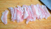 2.切成片,龙利鱼柳肉质很嫩,鱼片不要切的太薄,否则容易碎。