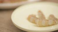 辅食第1回:虾蓉小馄饨,适合1岁以上宝宝实用。挑虾线技巧:准备好牙签,葱虾头和虾身的连接处向下数第三个关节,用牙签穿过虾身,轻轻向外挑,就能挑出虾线了。