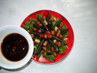1.准备好花生、芫荽和自己做的姜蒜剁椒。